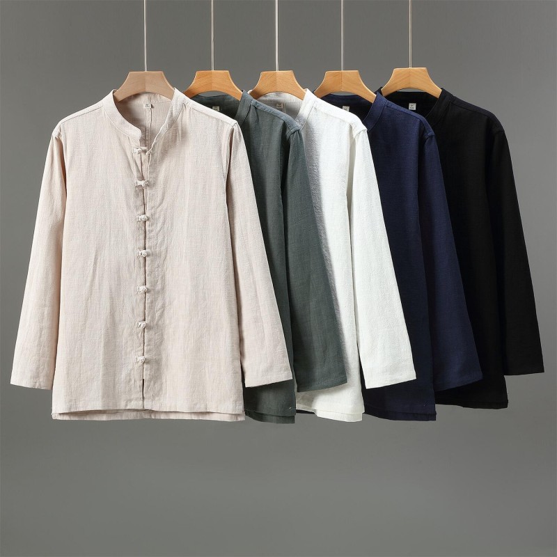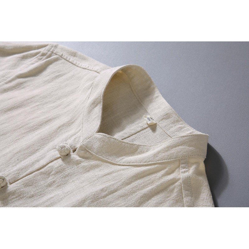 Achieve vintage charm with this men's vintage loose fit linen shirt featuring a stand collar. The breathable fabric and retro design offer both comfort and character.